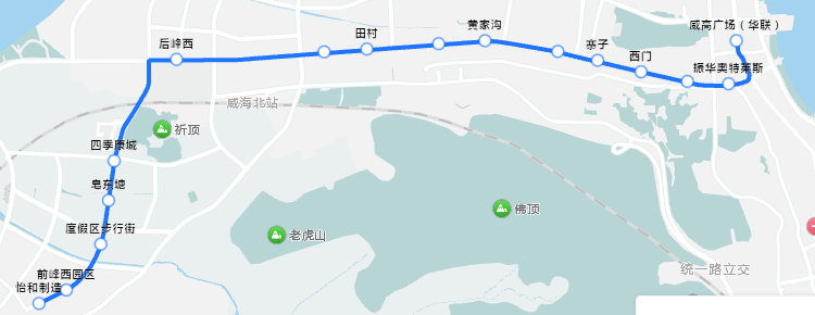 站点设置:威高广场(华联)、振华奥特莱斯、财金中心(农贸市场)、西门、寨子、怡心苑小区、黄家沟、王家庄、田村、华田小区、后峰西、四季康城、皂东塘、度假区步行街、前峰西园区、怡和制造共16站。