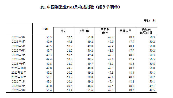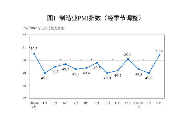 国家统计局:3月份制造业PMI为50.4% 景气水平回升