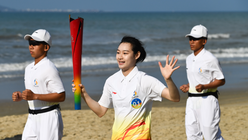 巴黎奥运会跳水女子双人3米板冠军昌雅妮担任第一棒火炬手。她表示,成为首棒火炬手既高兴又光荣,也是一份沉甸甸的责任。火炬手接力沿椰梦长廊沙滩奔跑约4.2公里后,在海月广场,两届奥运会举重冠军石智勇接力,火炬传递转入陆路,全程约3.8公里的路段串联起市民生活、滨海休闲与海洋经济产业等窗口。随后,在凤凰岛游艇码头至三亚国际游艇中心海域,东京奥运会乒乓球女团冠军刘诗雯手持火炬乘船完成约2.5公里的海上传递,于碧波之上展现“海上三亚”的独特魅力。东京奥运会射击冠军姜冉馨接过火炬,向鹿回头风景区奔跑。