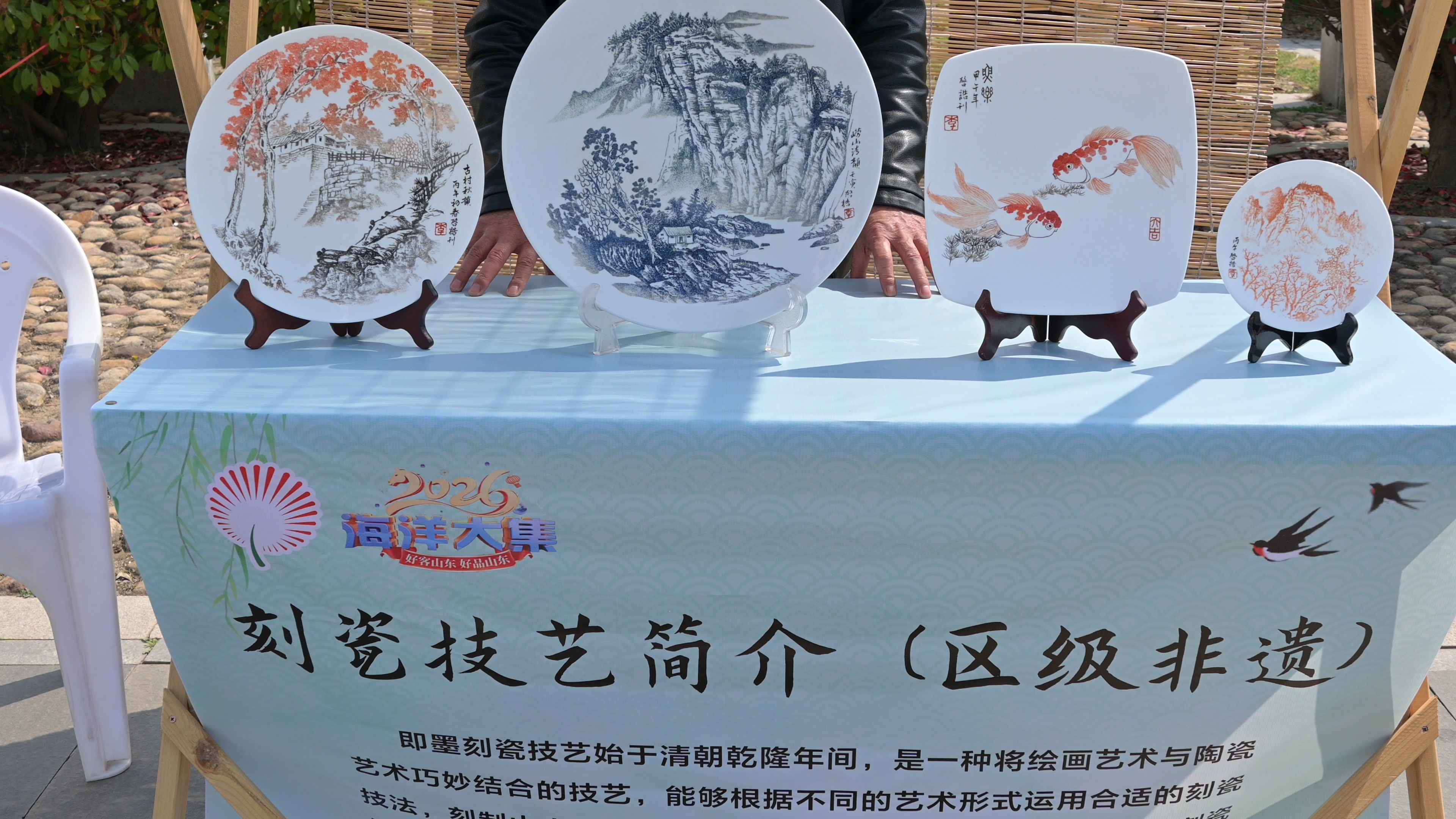 演出结束后,设在即墨大夫广场两侧的“舌尖与指尖的清明”非遗与民俗市集吸引众多市民驻足。市集设置非遗展示区、互动游戏区、美食品鉴区三大板块,打造了可逛、可学、可品、可玩的开放式体验空间。在非遗民俗展示区,掐丝珐琅、榼子、书画、烙画、七星螳螂拳、即墨花边、刻瓷、传拓技艺、传统乐器古埙、马山故事传说等项目集中亮相,非遗传承人现场展示精湛技艺,市民近距离感受即墨非遗文化的独特魅力。