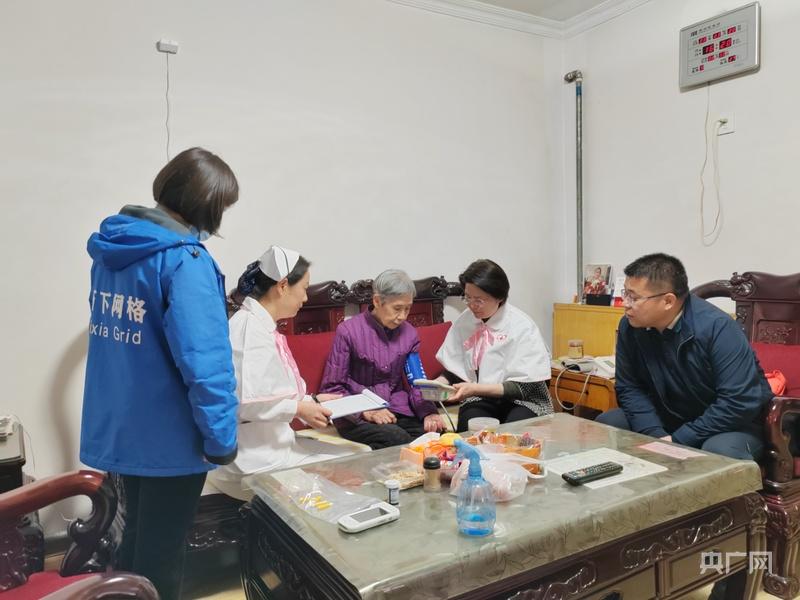护理服务队队员给居民测血压(央广网发 张是捷 摄)
