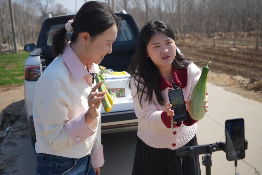 “齐鲁农超大篷车”正在寿光进行原产地直播。