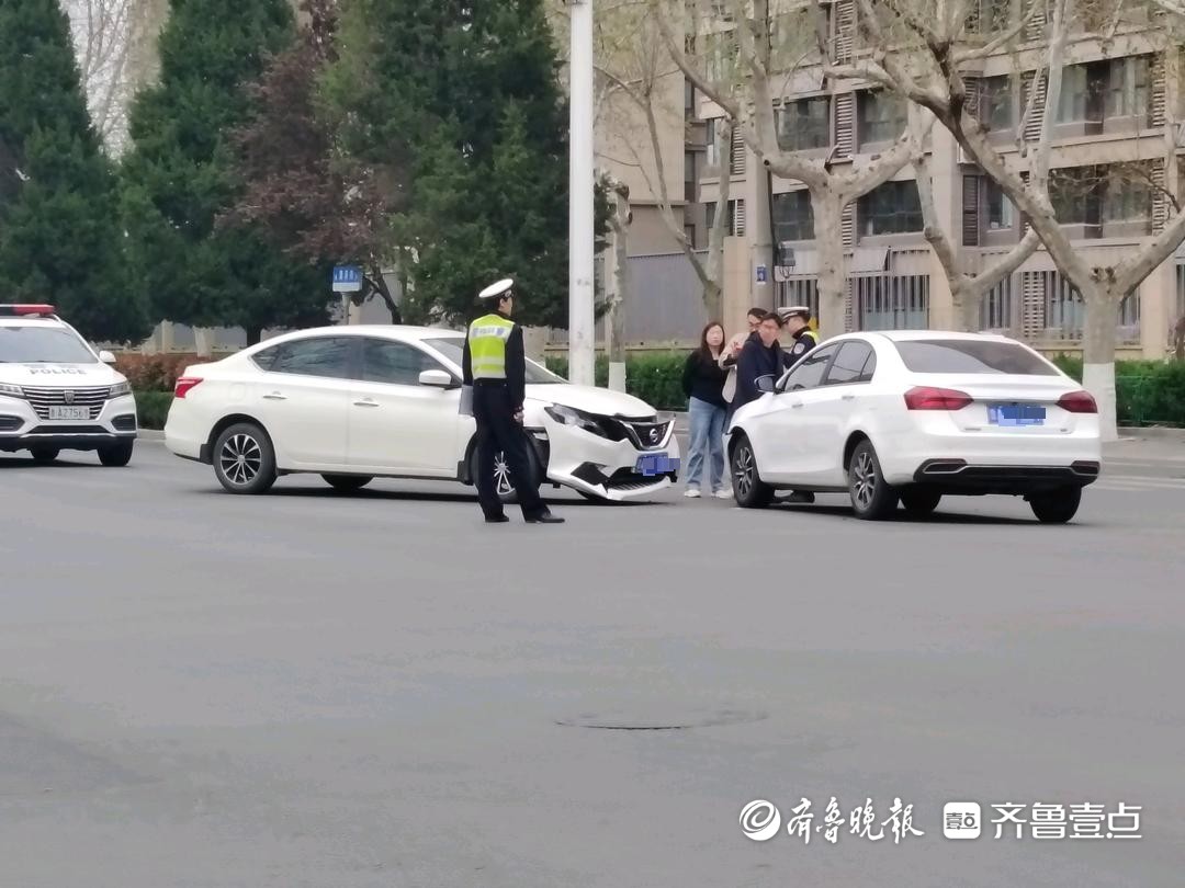 情报站|济南长清清河街与文昌路路口两私家车相撞,车头受损严重