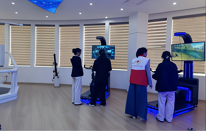 在VR心理放松体验区,VR动感单车、沉浸式体验舱等科技设备成为“减压神器”。参与者佩戴VR设备,在虚拟场景中沉浸式骑行、体验放松训练,在运动与科技的结合中释放压力、舒缓焦虑;动感座椅带来的多感官体验,为群众提供了安全、可重复的情绪宣泄与心理调适渠道,有效缓解日常工作与生活带来的精神压力。会员们全程协助操作设备、维护现场秩序,确保每一位参与者都能安全、顺畅地完成体验,切实感受到心理服务的温暖与专业。