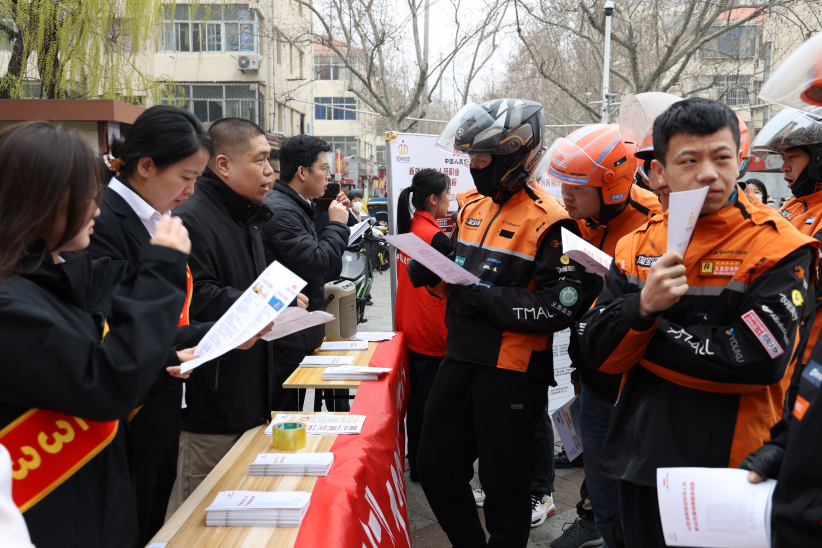 3月30日上午,威海市人社局、环翠区人社局、人保财险威海分公司组成宣讲团队,走进大世界诚信广场,为淘宝闪购、美团外卖等平台从业者详细解读职业伤害保障政策核心要点。