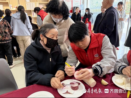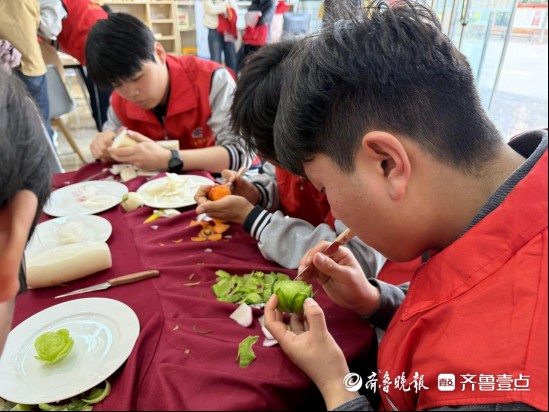 烹饪专业的志愿者们带来了精彩的果蔬雕花展示与体验活动。一把把普通的果蔬在志愿者手中经过精雕细琢,变成形态各异、栩栩如生的花艺造型,吸引了众多居民驻足观看。志愿者们还邀请居民参与简易果蔬雕花体验,耐心指导大家掌握基础雕刻技巧,并将现场制作的果蔬雕花成品赠予居民,既传递了美食文化,也让居民感受到了志愿服务的温暖,贴心举动赢得了居民们的一致好评。