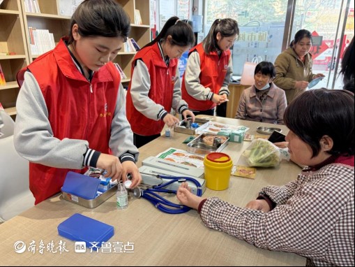 活动现场,各专业志愿者团队各展所长、精准服务,为社区居民带来多样化、专业化的志愿服务,让居民在家门口收获暖心关怀。智慧健康养老服务专业志愿团队充分发挥专业优势,聚焦居民健康需求,开展免费血压、血糖测量服务,志愿者耐心为居民解读检测结果,细致讲解血压血糖异常的日常防控要点与注意事项。同时,团队还提供中医耳穴贴豆服务,根据居民身体状况精准定位耳穴,助力居民缓解疲劳、改善睡眠,用专业的健康服务为社区居民的身体健康保驾护航。
