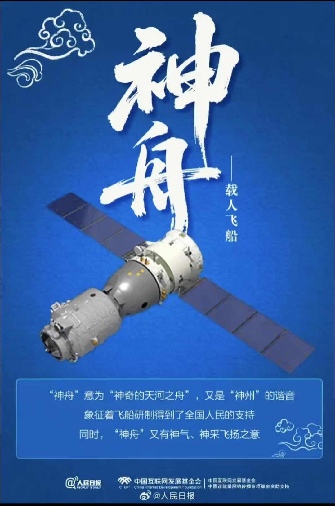 神舟(shén zhōu):专指中国载人航天飞船。舟:船、舟船。如:神舟飞船、神舟十二号、神舟十七号。