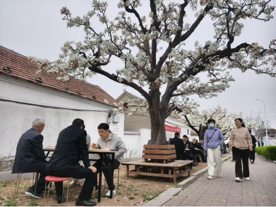 与象棋赛事同步,行宫村的春日花海也迎来了最佳观赏期。洁白的梨花缀满枝头,与青砖黛瓦的村居相映成趣,构成了一幅诗意盎然的田园画卷。不少游客在观赛之余,漫步花间、拍照打卡,尽情享受春日美好。