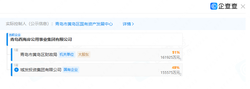 据企查查,青岛西海岸公用事业集团实际控制人为青岛市黄岛区国有资产发展中心。