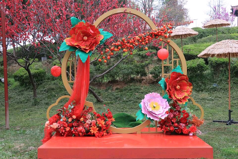 值得一提的是,今年园区以主干道为中轴,向南北两侧赏花区域延伸,精心打造20余个主题打卡点,围绕“一花王、十二花神”体系,以牡丹为核心设计元素,融入12月值令花元素,实现一步一景、一景一韵。特色方言墙、创意美陈、文创与非遗体验项目、国花馆XR体验等多种互动玩法精彩纷呈。园区还设有专属牡丹开放区,供游客近距离观赏牡丹,沉浸式领略其雍容华贵的独特魅力。此外,景区联合天津美术学院、中国书画报社在国花馆举办首届中华牡丹书画艺术双年展,翰墨飘香伴牡丹,为游园增添雅致气息。