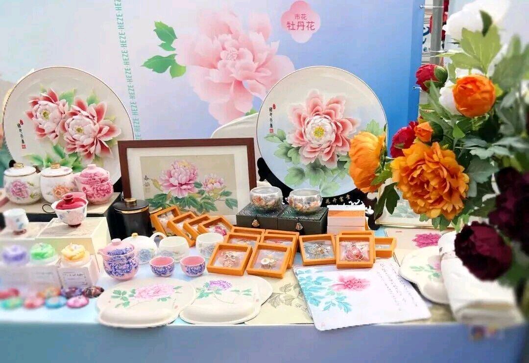 在文创与非遗体验方面,园区东西主干道区域设有DIY文创包、牡丹纯露低氘水、牡丹清露苏打水、鲜花饼、牡丹瓷器等特色衍生产品,一口解锁牡丹风味。东门主干道品牌展示区打造企业展销专区,花冠、大众等知名企业入驻,逛园之余还可解锁惊喜好物。西门至国风苑区域打造非遗市集,汇聚曹州刻瓷、曹州面人、曹州剪纸等十余家特色非遗摊位。观花楼、国花馆东侧分别设置汉服妆造体验馆,便于游客沉浸式体验国风美学。