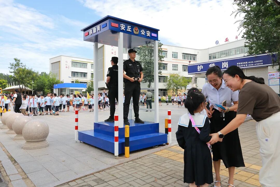 校园安全关乎千家万户。2024年5月,安丘公安在全市18所2000人以上的中小学校门前增设高台护学岗亭。上下学时段,执勤民警配齐装备、提前到岗,及时处置各类问题。同时,联合教体部门对全市225所学校门前“一键报警系统”完成升级改造,实现与110一键报警、音视频同步,有效提升突发事件处置能力,全力守护校园安全。