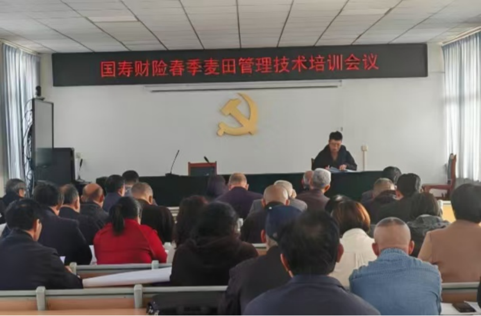 中国人寿财险山东省潍坊市高密支公司联合高密市农业农村局进行小麦田间管理及防灾减损技术培训。