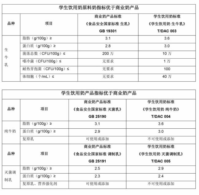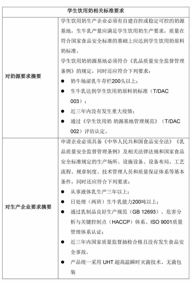 学生饮用奶相关标准要求