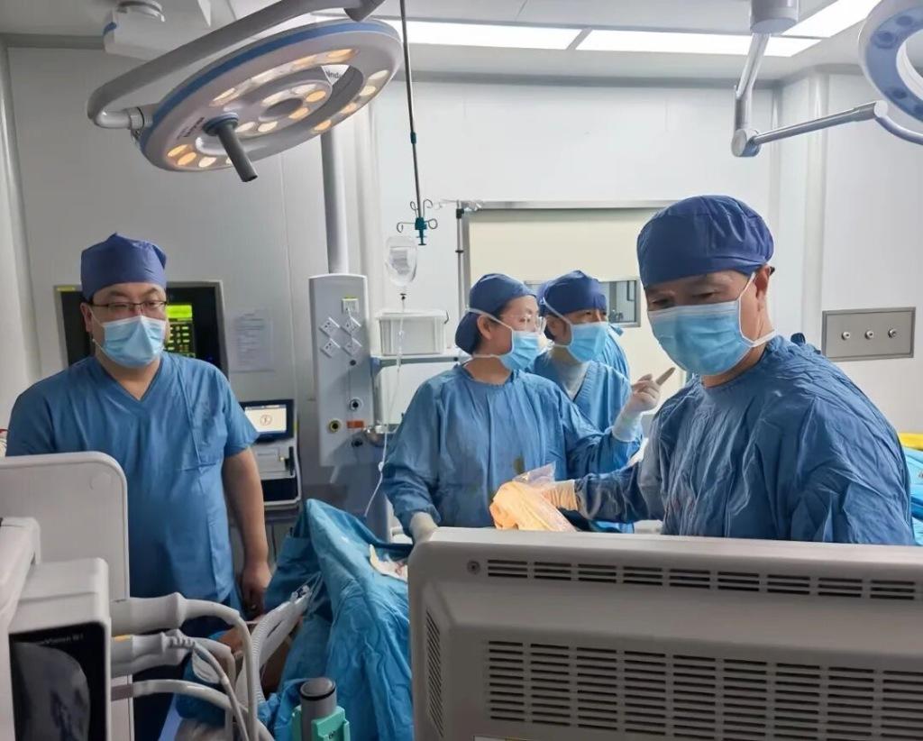 面对危急病情,医院迅速启动多学科会诊机制,胎儿医学中心、产科、输血科、超声科、麻醉科、新生儿科等多个科室快速响应,组建专业救治团队并联合制定周密救治方案,最终确定采用脐静脉穿刺宫内输血技术开展救治。救治团队依托多年胎儿宫内干预的临床经验,通过三维超声重构宫腔内三名胎儿的精准方位,避开正常胎儿与胎盘关键血管,规划出安全且精准的最优穿刺路径,输血科同步联动青岛市中心血站,紧急调配适配胎儿的O型Rh阴性辐照浓缩红细胞,为手术顺利开展做好充分准备。