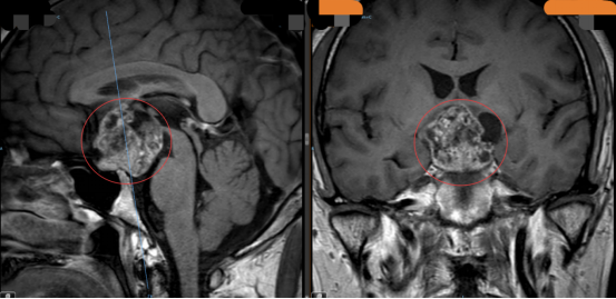 数月前,一场突如其来的“异常”打破了唐先生的正常生活——无明显诱因下,他频繁出现视物模糊,烦渴尿多等 症状……经磁共振检查,一个令人揪心的结果浮出水面:唐先生颅内长有一颗3.8×3.6×3.3 厘米的颅咽管瘤,而这颗“不速之客”正悄然威胁着他的生命健康。