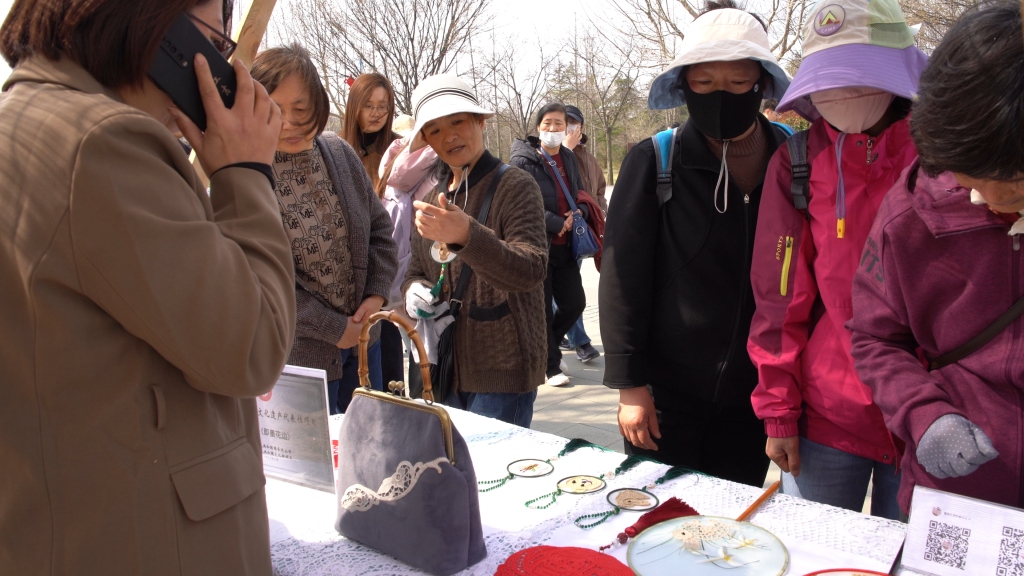 演出结束后,设在即墨大夫广场两侧的“舌尖与指尖的清明”非遗与民俗市集吸引众多市民驻足。市集设置非遗展示区、互动游戏区、美食品鉴区三大板块,打造可逛、可学、可品、可玩的开放式体验空间。在非遗民俗展示区,掐丝珐琅、书画、烙画、七星螳螂拳、即墨花边、刻瓷、传拓技艺、传统乐器古埙、马山故事传说等项目集中亮相,非遗传承人现场展示精湛技艺,市民近距离感受即墨非遗文化的独特魅力。