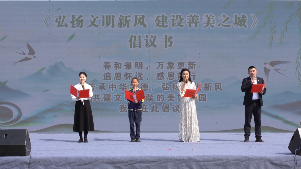 活动现场,小学生合唱《如愿》用清澈童声传递对先辈的敬意与对未来的期许;独唱《故土·清明》以深情旋律唤起观众对家乡与亲人的思念;市民代表现场宣读《文明倡议书》,号召大家以文明方式寄托哀思,共度清新、文明的清明节。互动答题环节将传统文化知识和文明倡议融入其中,小品《父女情》以温情故事诠释家风传承,幼儿园小朋友带来的手势舞《清明》天真灵动,赢得阵阵掌声。