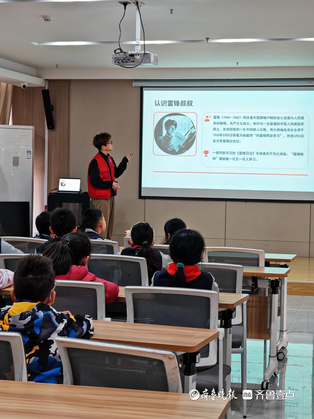 活动过程中,志愿者以“雷锋叔叔的故事”为主题,结合多媒体课件、雷锋日记选段和历史图片,向小学生系统讲述了雷锋的成长历程。课堂上,孩子们认真聆听、积极互动,在温暖感人的故事中走近雷锋、理解雷锋。