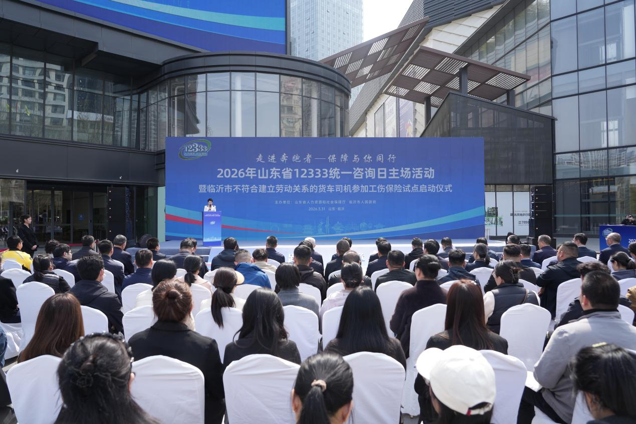 3月31日,“走进奔跑者——保障与你同行”2026年山东省12333统一咨询日主场活动暨临沂市不符合建立劳动关系的货车司机参加工伤保险试点启动仪式在临沂举办。