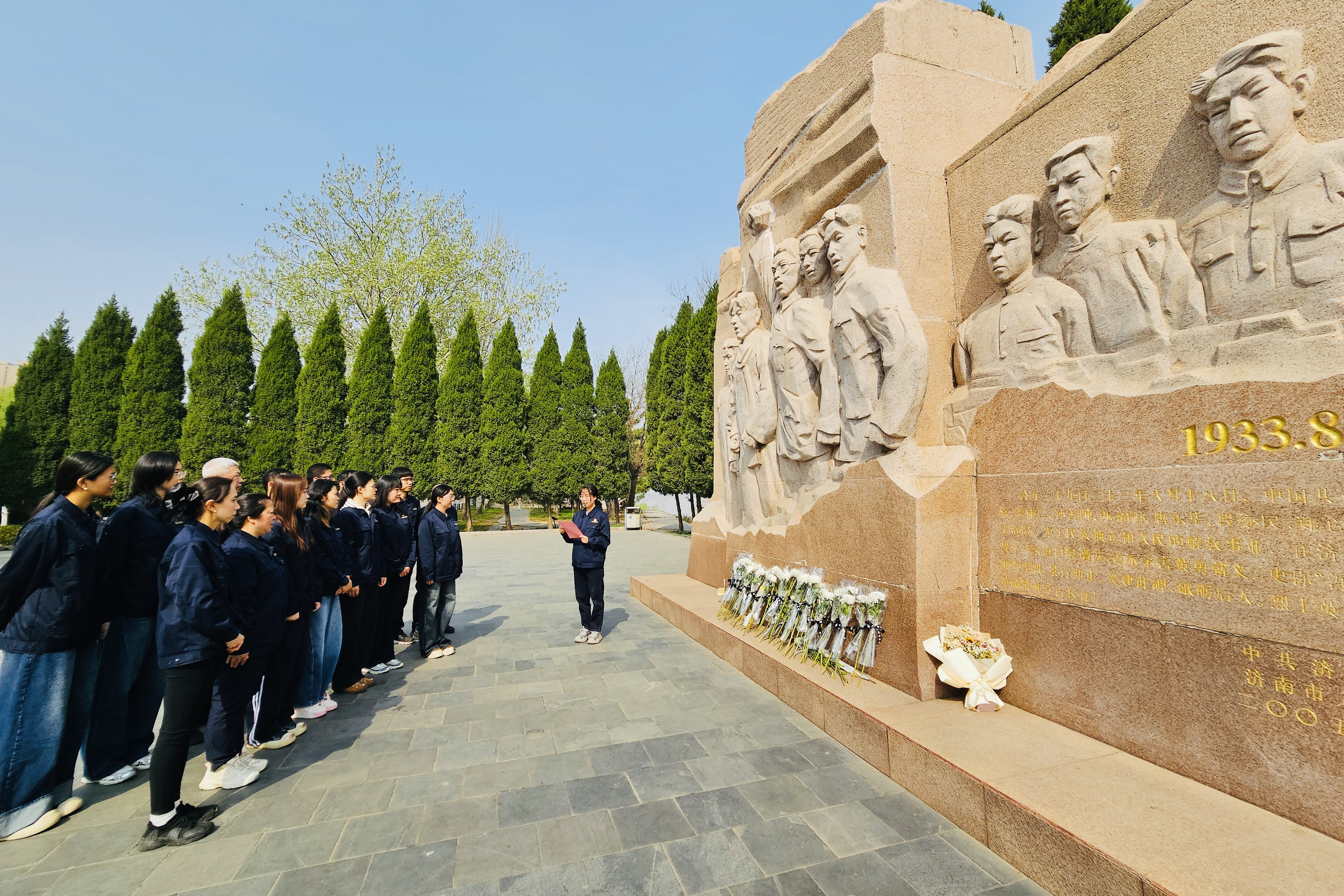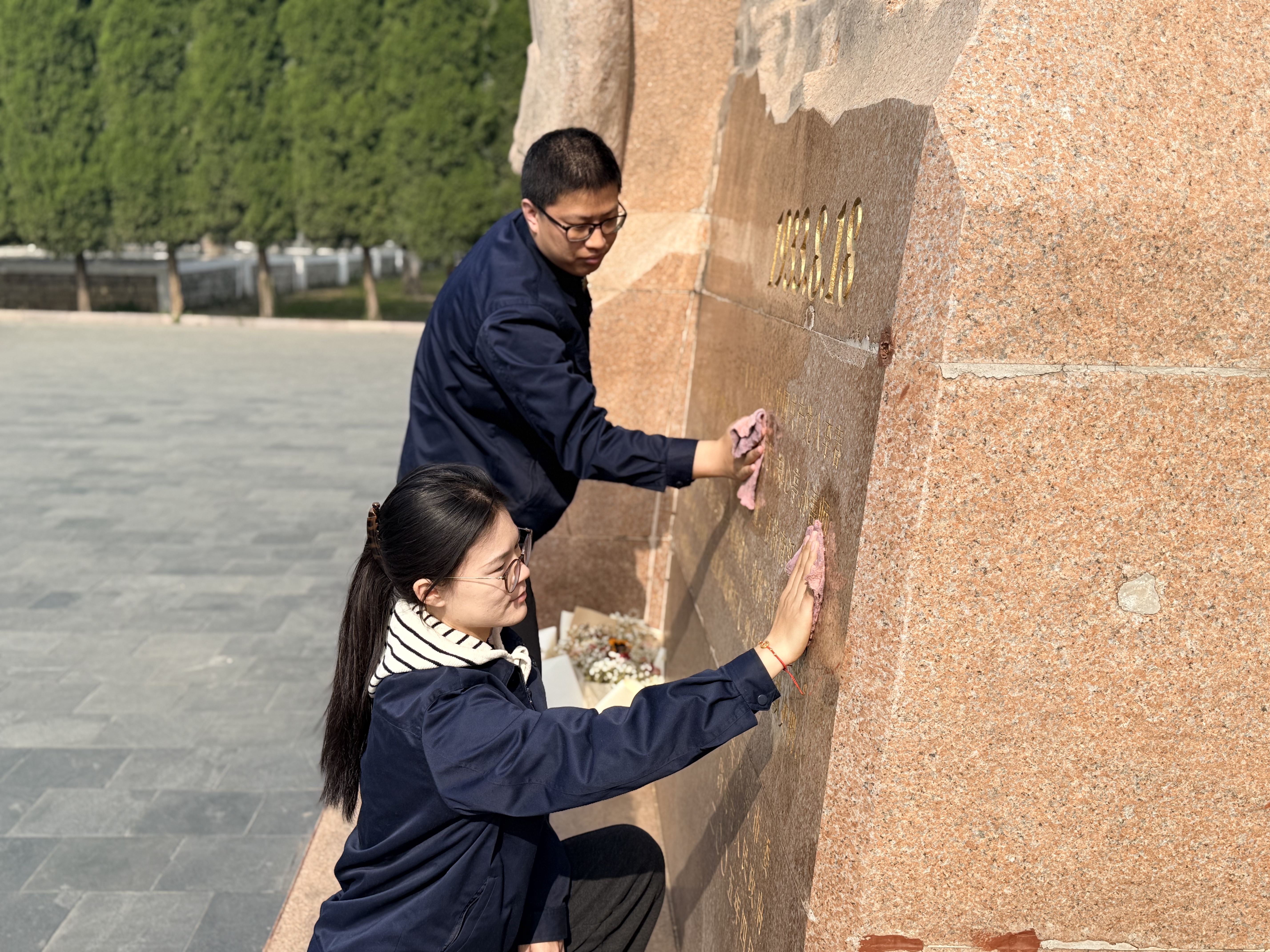 活动现场,“热电星火”志愿者神情庄重,在黄河九烈士纪念碑前肃立默哀、敬献鲜花,寄托对革命先烈的无限哀思与深切缅怀。大家细心擦拭纪念碑、清扫周边环境,让英烈安息之地始终整洁肃穆。