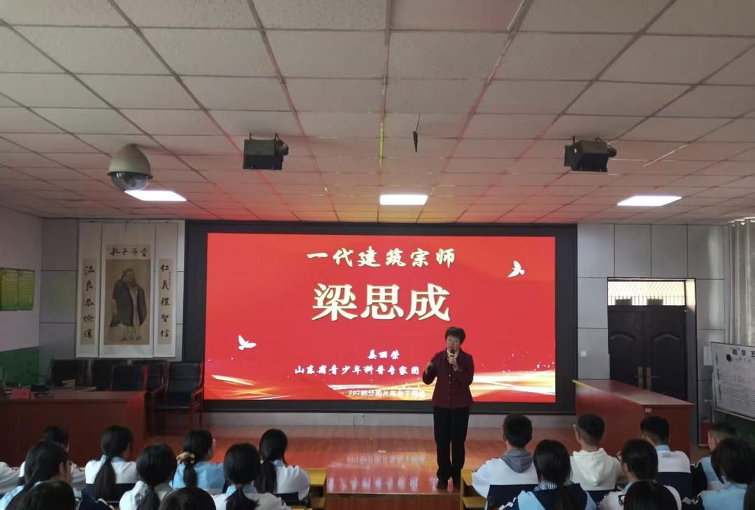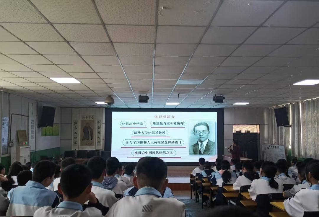 姜丽荣教授深耕科普领域,熟知青少年认知规律,此次以《一代建筑宗师——梁思成》为主题,用通俗易懂、生动鲜活地讲述,开启了这场科普之旅。开篇一句简单的提问,瞬间吸引了全体学生的注意力,带领大家走进建筑大师梁思成的传奇人生。