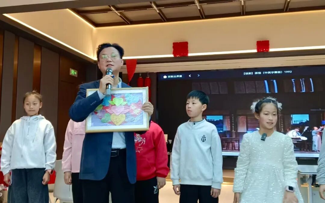 白金还组织30多名不同年级的小学生合力演绎中国经典话剧《茶馆》选段。为了排演这场中英双语话剧,他耗时20多天反复修改完善双语剧本,录制100多条示范音频,逐字逐句指导孩子语音语调,手把手指导走位、表情,还单独为基础薄弱的孩子补课,将心血与关爱倾注在孩子身上。