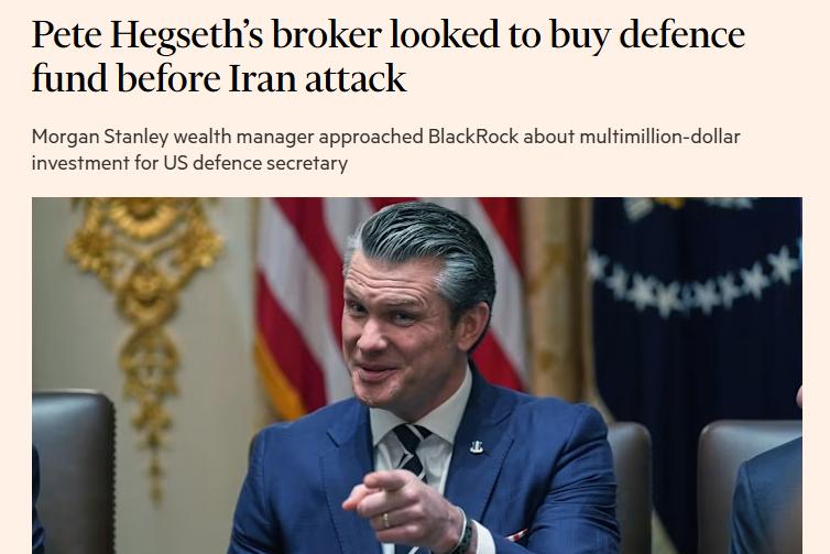 尽管这笔交易最终并未成交,但英国《金融时报》指出,仅这一尝试本身,就足以引发巨大争议:当五角大楼正筹划军事行动时,防长身边的人却在研究如何押注“防务受益资产”。美国阿克西奥斯新闻网站(Axios)则直言,神秘的交易模式,正伴随美国一步步走向战争。