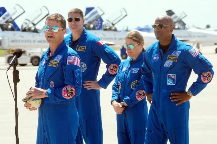 指令长里德·怀斯曼、任务专家杰里米·汉森、任务专家克里斯蒂娜·科赫(女)和宇航员维克多·格洛弗(资料图)