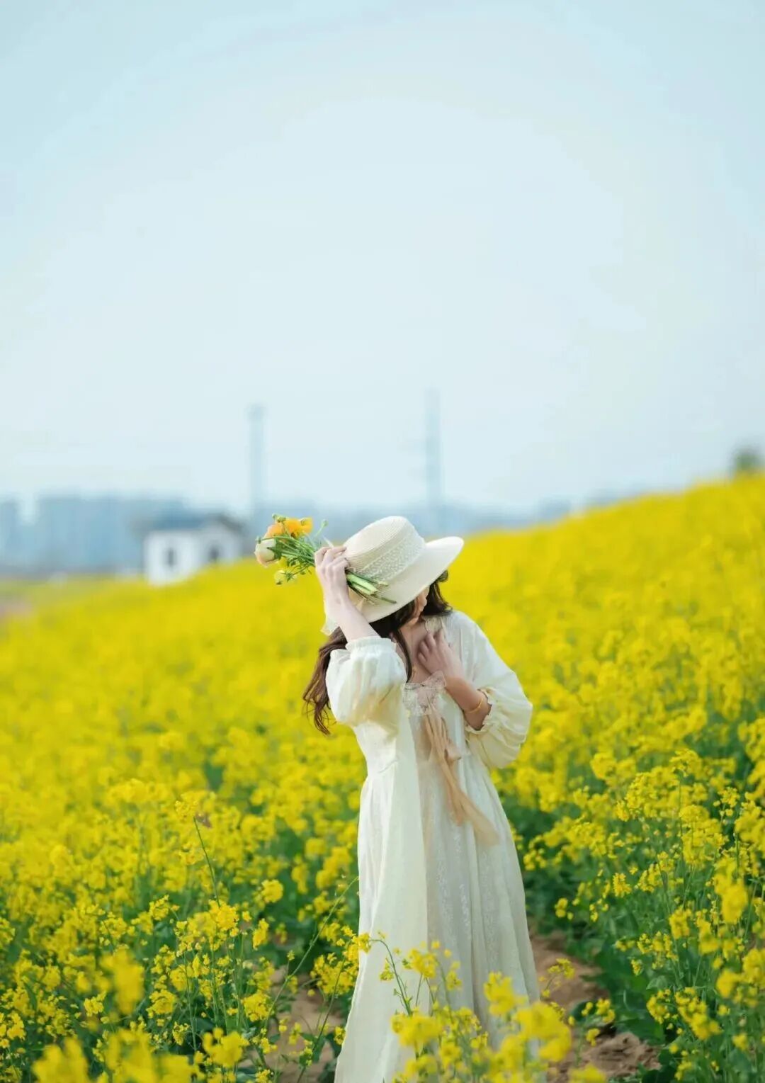 穿搭建议:推荐选择白色、米色、浅蓝色等浅色系衣物。与金黄的花海形成鲜明对比,清新又雅致,非常出片。
