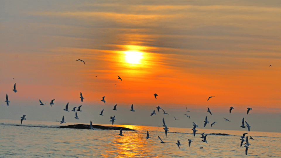 天气情报站|日照灯塔风景区海边日出红胜火,霞光漫天蓬勃壮观!