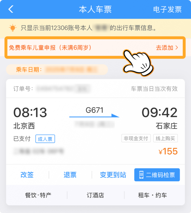 点击【免费乘车儿童申报】添加免费乘车儿童即可。