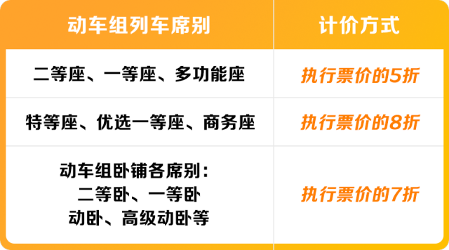 动车组列车票价折扣