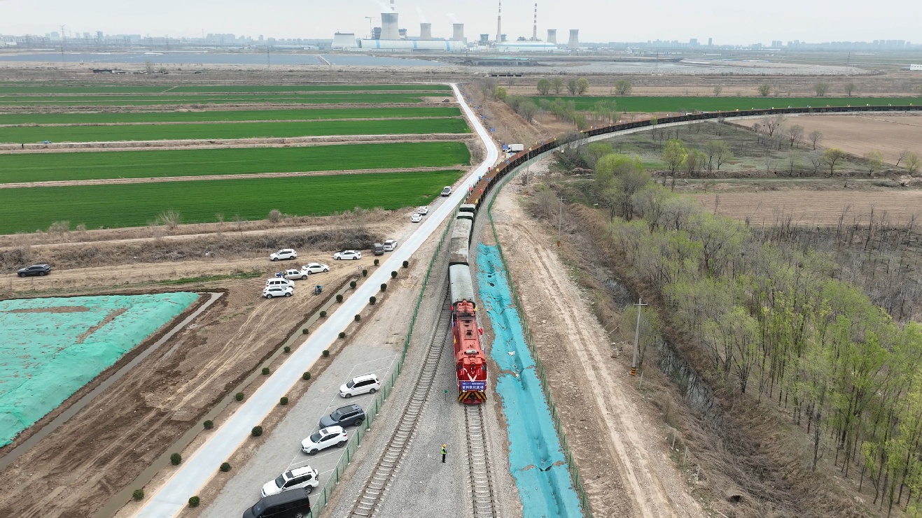 中铁二十一局津潍高铁东营南铺轨基地占地约143亩,承担全线248.244公里的长钢轨和57组无砟道岔铺设等施工任务,设计存轨能力达170公里,实现500米长单元轨的规模化、标准化存储。基地修建的6.8公里的专用运轨便线,将胜利电厂专用线与东营南站站场无缝衔接,构建起一条高效畅通的钢轨运输“主动脉”。