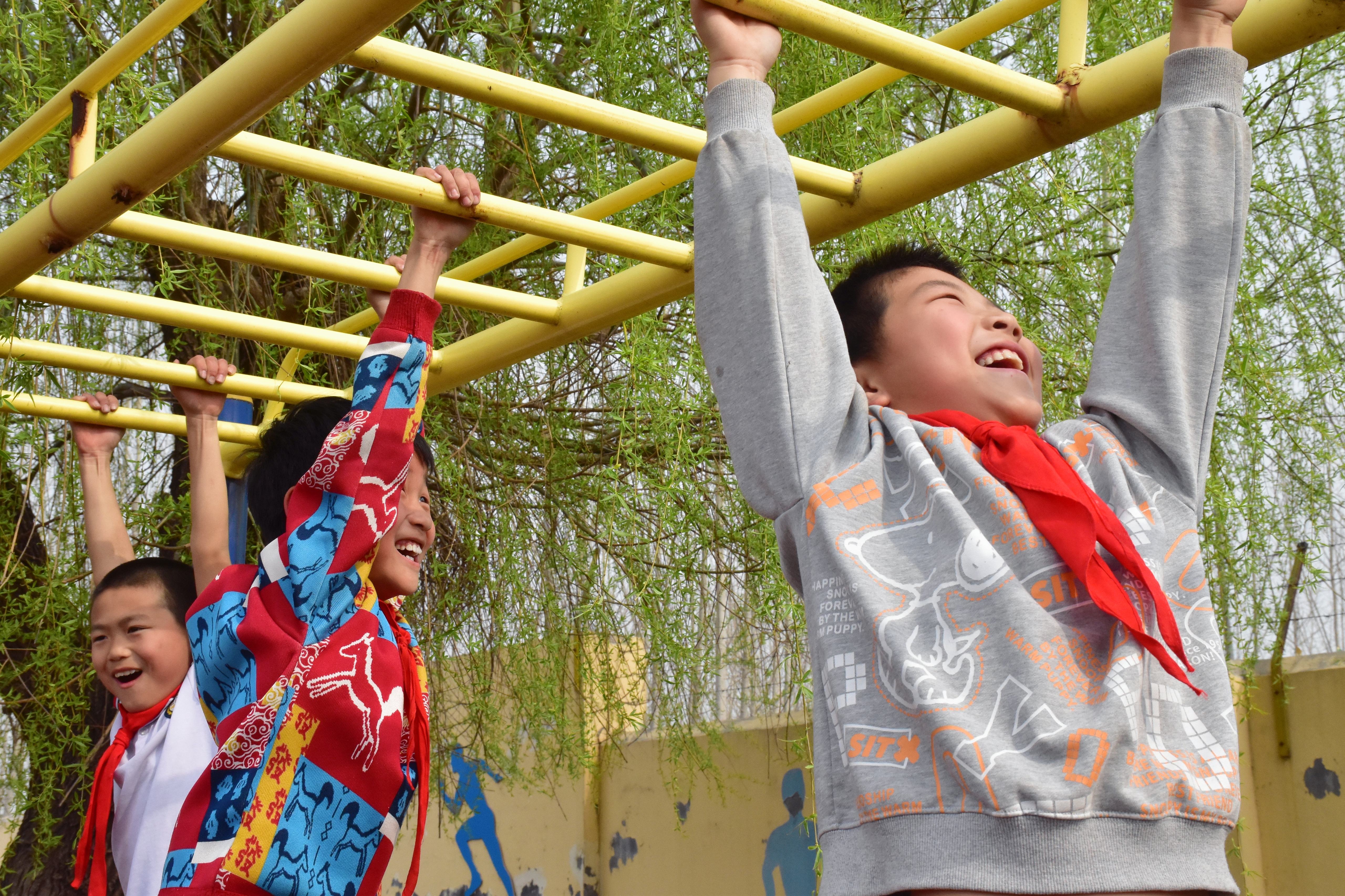 爬云梯项目旁,三年级的小邵同学引起了大家的注意。他个头不高,第一次尝试时悬在半空不敢挪动。在体育老师的保护和同学们的“加油”声中,他咬紧牙关,成功移过了最后一道横杠。落地时,他的小脸涨得通红,但笑容格外灿烂。