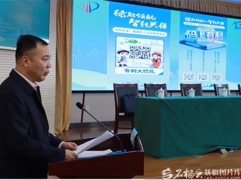 3月24日,在新疆“绿色矿业·能源化工”专利转化活动现场,自治区市场监督管理局(知识产权局)发布绿色矿业和能源化工、电力等领域的“码上有利”专利集群二维码。石榴云/新疆日报记者 任春香摄