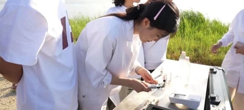 农大研究生正在测量螯虾苗投放水质。资料图