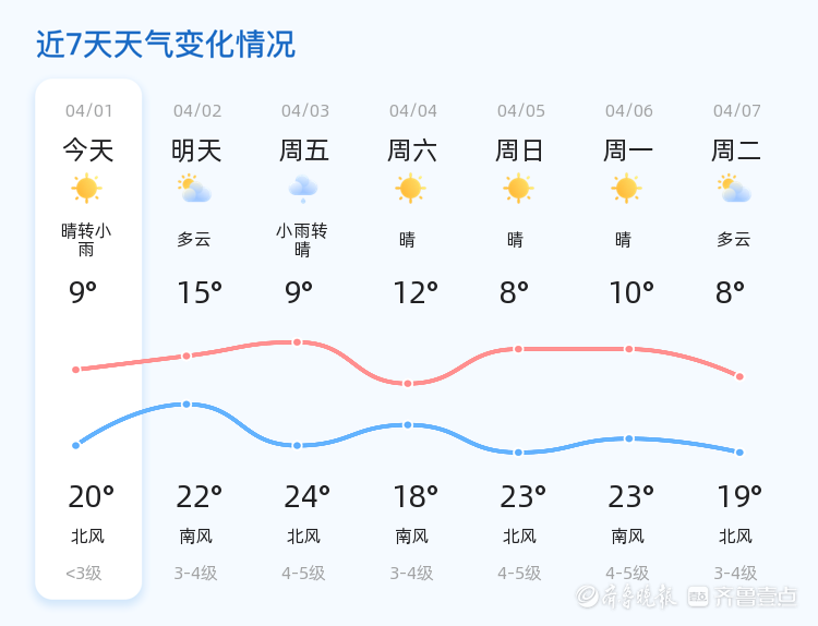 今天是4月1日,星期三,农历二月十四,也是西方传统的愚人节。愚人节起源于欧洲中世纪,通常在这一天,人们会互相开玩笑、愚弄他人,但也要注意分寸,避免伤害他人感情。今日聊城各区天气以晴转小雨为主,气温在9℃至20℃之间,东南风1级,空气湿度高达98%,pm2.5指数为145,建议市民注意防雨和呼吸道防护。
