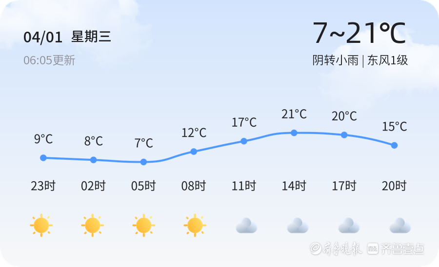 今天是2026年4月1日,星期三,农历二月十四,也是西方传统节日愚人节。愚人节起源于欧洲,通常在每年的4月1日举行,人们通过各种方式互相开玩笑和恶作剧来增添节日气氛。然而,玩笑虽好,也需适度,避免对他人造成困扰或伤害。今日泰安市整体天气以阴转小雨为主,各区气温在7℃至21℃之间,东风1级,空气湿度较高,达到94%。市民出行时需携带雨具,注意保暖和防滑。