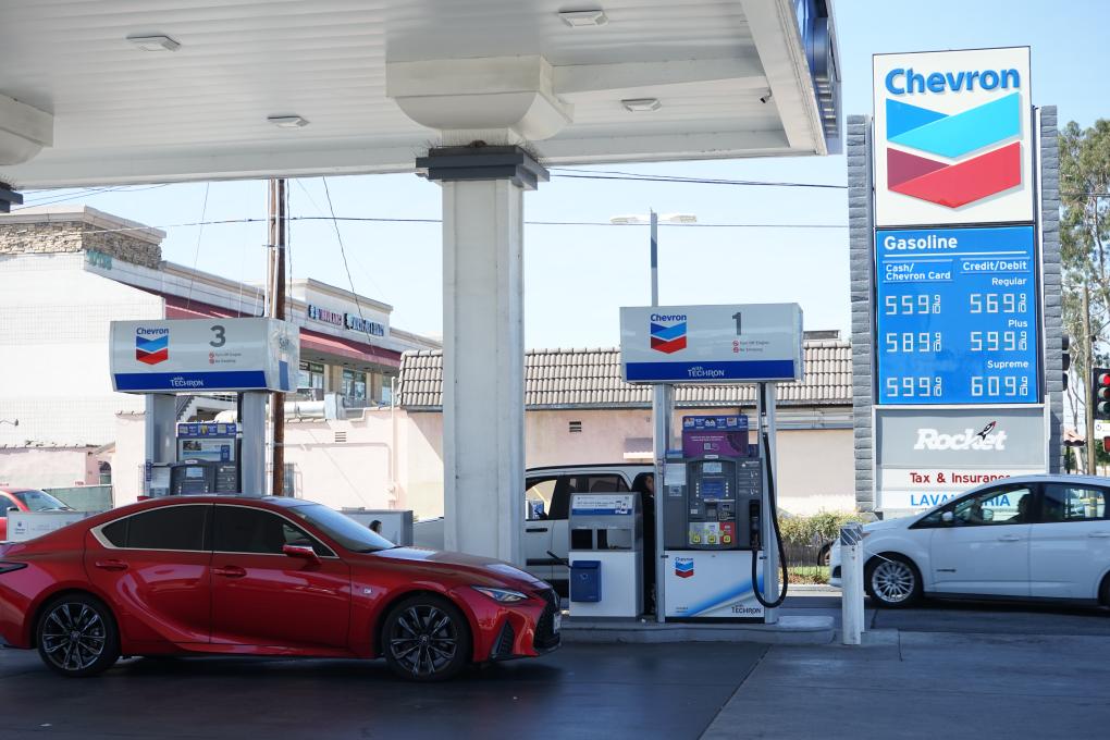 这是3月17日在美国加利福尼亚州洛杉矶县埃尔蒙特市拍摄的一家加油站。新华社发(曾慧 摄)