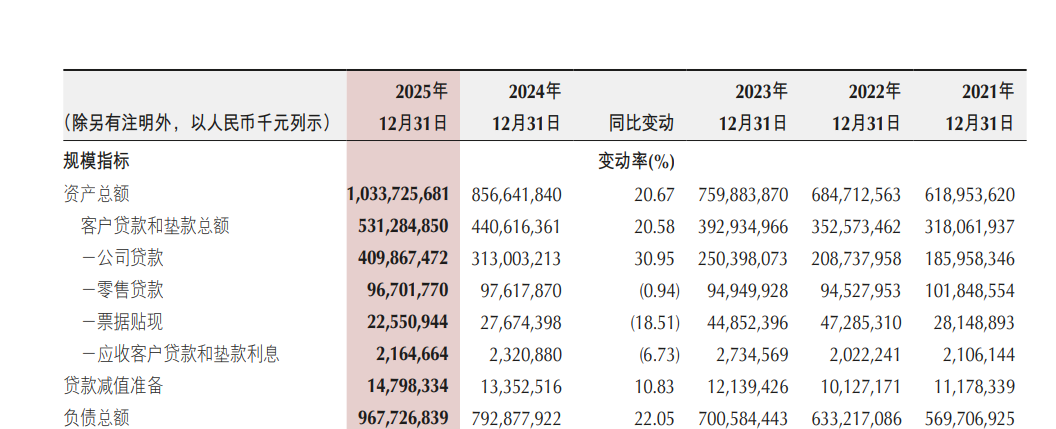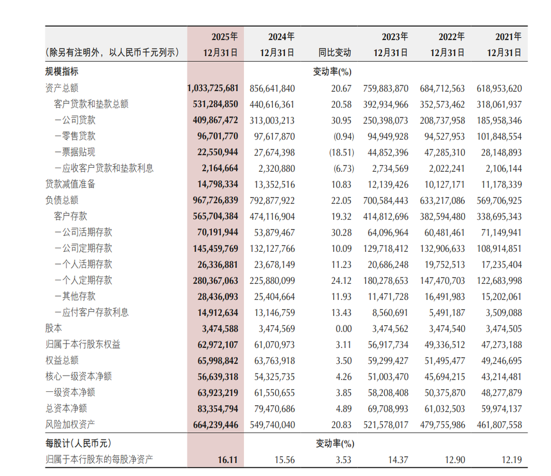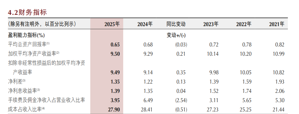 数据显示,2025年末,重庆银行资产总额达10337.26亿元,年度资产增量近1800亿元,较上年增长20.67%,增速在已披露年报的A股上市城商行中位居前列。然而,这一资产增速是净利润增速的约两倍,规模扩张与效益提升严重脱节。全年平均总资产回报率0.65%,同比下降0.03个百分点;加权平均净资产收益率9.50%,同比微升0.21个百分点,两项核心盈利指标在上市城商行中均处于较低水平,盈利效率短板凸显。