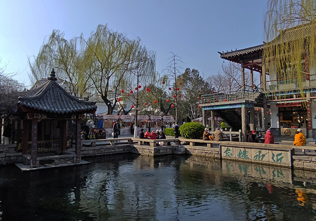 说到月牙泉,旧时称月牙池,池边有近一米多高的石墙围绕,池子东北方为泉水出水口,向东流入护城河,周围居民常在此浣洗衣物。