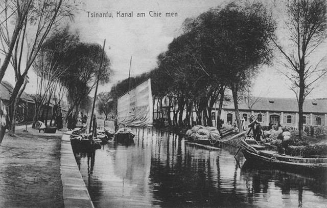 古时小清河,以趵突泉泉群为源头,又有五龙潭、黑虎泉泉群加持,护城河水源充足,水位深,商船可从东流水附近码头直抵小清河入海口的寿光羊角沟。从泺源门(西门)桥头北望,护城河上帆影点点,不禁联想起宋人晏殊词作《浣溪沙·红蓼花香夹岸稠》所云:“绿波春水向东流,小船轻舫好追游。”莫非他写的是济南东流水?