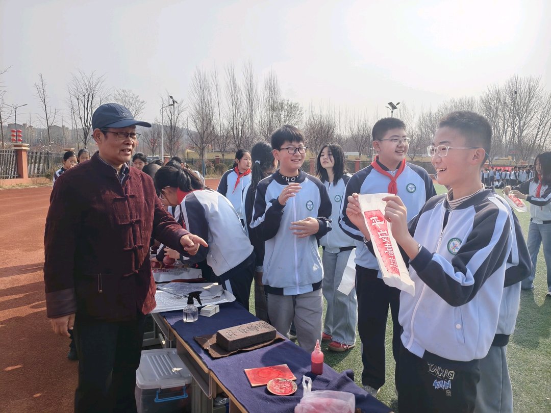 在山东省工艺美术大师、非遗代表性传承人肖广德老师的指导下,学生们亲手操作拓印,将刻有“平安喜乐”字样的拓版,通过上纸、敲打、上墨,制成独一无二的“平安+版权”主题作品,在体验非遗魅力的同时,传递安全与版权理念。