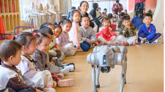 “它的动作好灵活!”“原来科技可以这么有趣!”互动过程中,孩子们不时发出惊叹,目光紧紧跟随机器狗的一举一动。通过近距离接触与简单操作,孩子们在寓教于乐中感受到智能科技的神奇魅力。