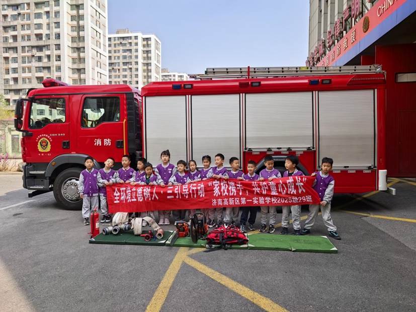 为深入推进“全环境立德树人·三引导行动”,促进家校协同育人,让孩子们近距离感受消防魅力、学习消防安全知识,济南高新区一实验教育集团开拓校区2025级29班学生成长共同体,于3月29日组织同学们走进济南高新区牛旺消防救援站,开展了一场别开生面的研学实践活动。
