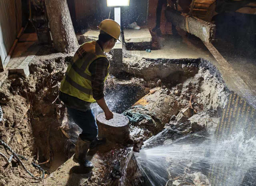 深夜攻坚保民生——泰安市自来水公司高效处置岱道庵路DN800输水管线漏水险情