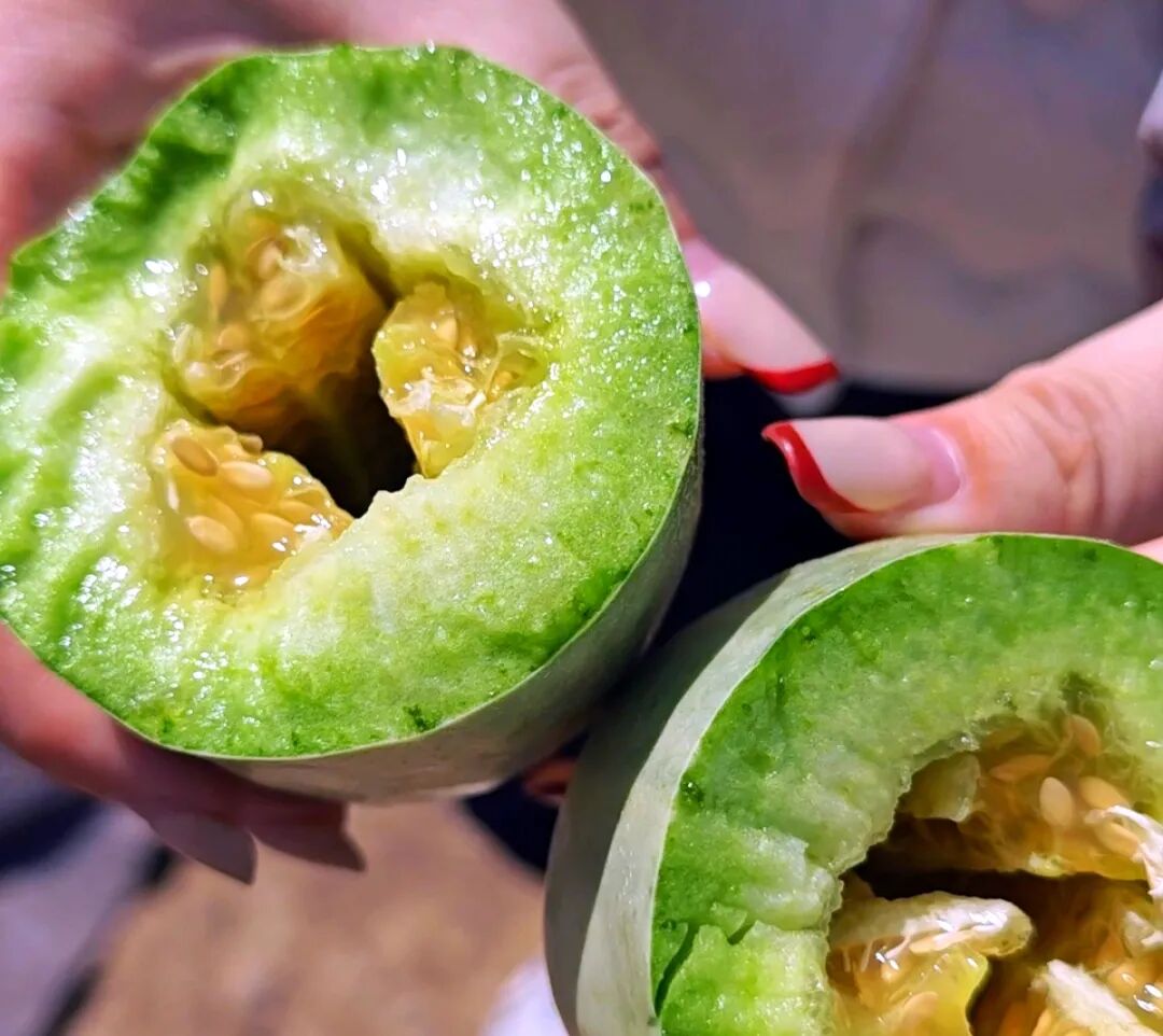 光凭口感就赢了大半。羊角蜜一上市,就把春天独一份的“甜”和“脆”做到了极致。果肉紧实、清甜多汁,咬下去不是软塌塌的,而是脆生生的“咔嚓”声——就冲这一口,它从众多瓜果里杀出重围,俘获了一大批甜瓜爱好者的胃。