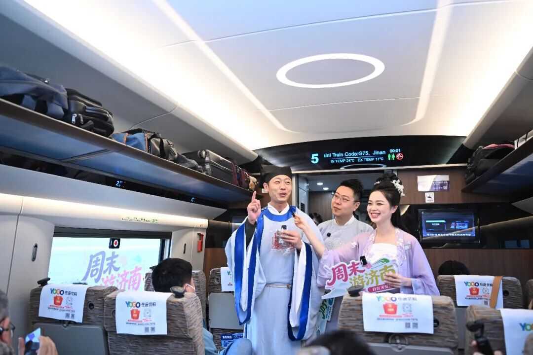 3月31日,“周末游济南”高铁主题营销活动在济南往返上海的G75/G76次列车上举行。